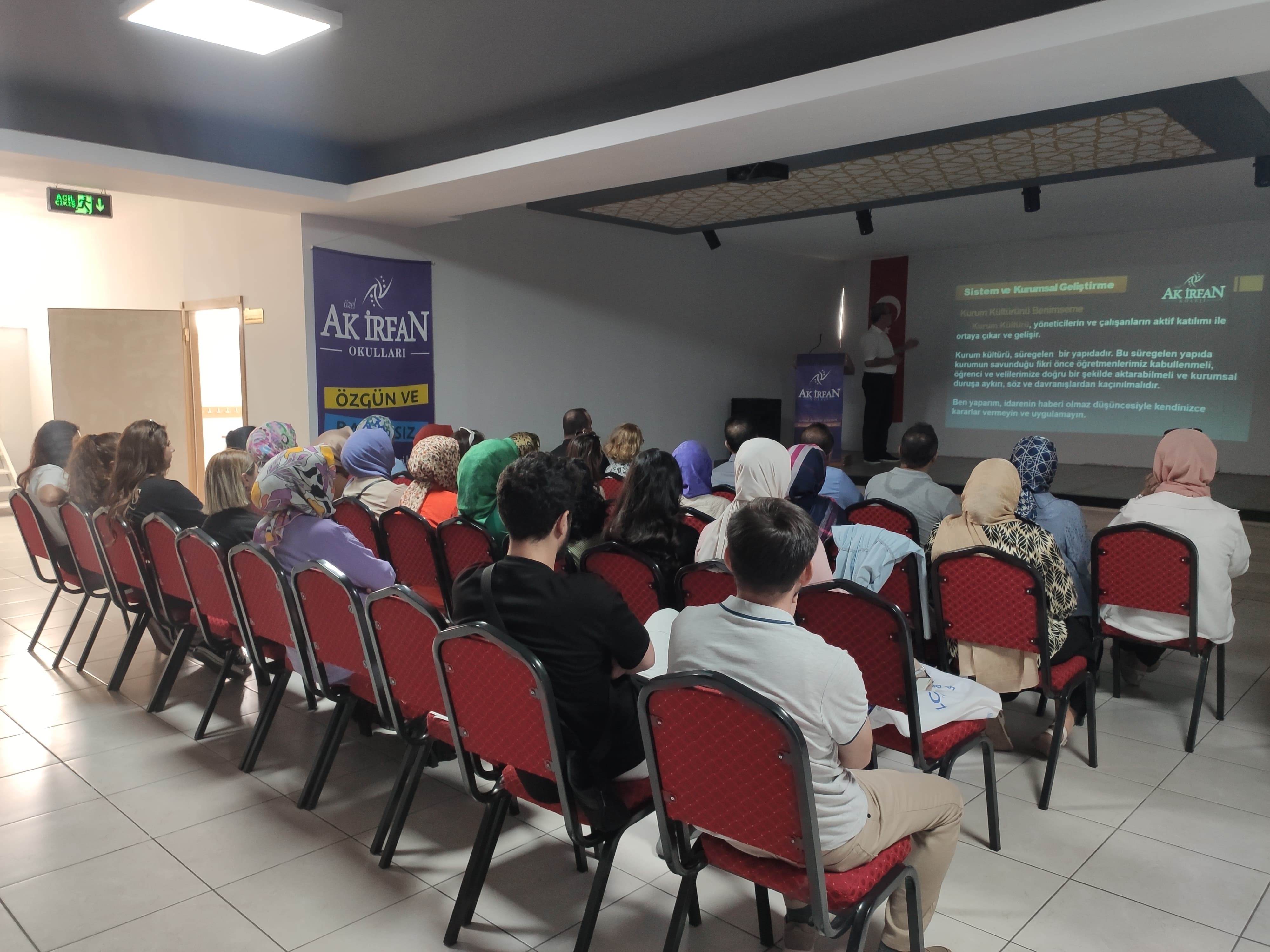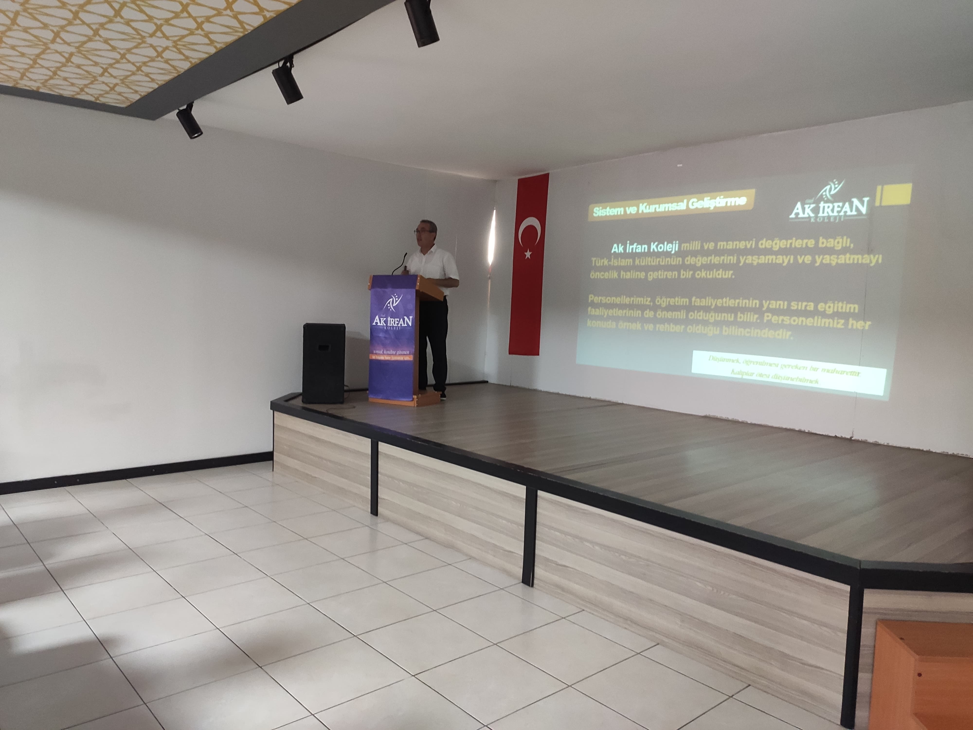 2024-2025 Eğitim Öğretim yılı öğretmen seminer programı 2 Eylül Pazartesi günü düzenlenen programla başladı. Programın ilk gününde okulumuz Yönetim Kurulu Başkanı Ali ÖZLÜK tarafından öğretmenlerimize Kurum Kültürü, Veli Beklentileri ve Okul Kuralları konulu bir sunum yapılmıştır. Yönetim Kurulu Başkanı Ali ÖZLÜK; yeni eğitim öğretim yılının ülkemiz ve ilimiz için hayırlara vesile olması temennisinde bulunmuştur. 2024 LGS'de okulumuzdan iki öğrencimiz bütün soruları doğru cevaplayıp, 500 tam puan alarak bizleri gururlandırmıştır. Temennimiz bundan sonraki yıllarda bu başarının artarak devam etmesidir. Ak İrfan Koleji; milli ve manevi değerlere önem veren, üretken, düşünen, geleceğin liderlerini yetiştirmeyi kendine düstur edinmiştir sözleriyle konuşmasını tamamlamıştır.