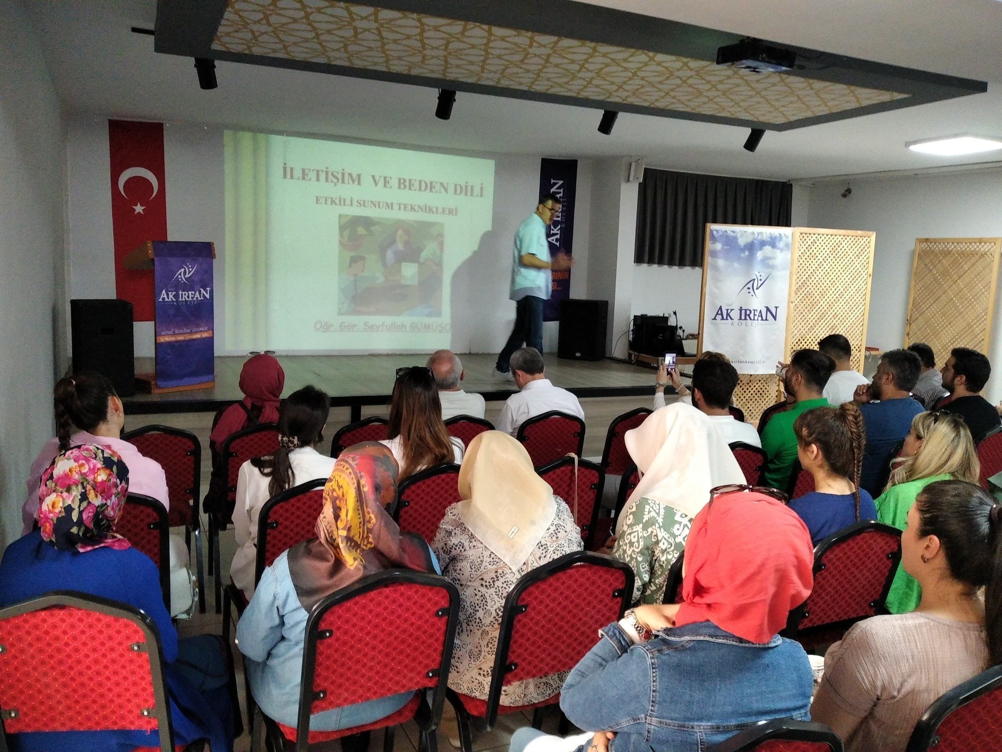 Seminer programının üçüncü gününde Aksaray Kariyer Geliştirme Uygulama ve Araştırma Merkez Müdürü Öğr. Gr. Seyfullah GÜMÜŞOK tarafından öğretmenlerimize 'Etkili İletişim ve Beden Dili' konulu seminer verildi.